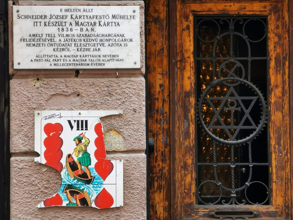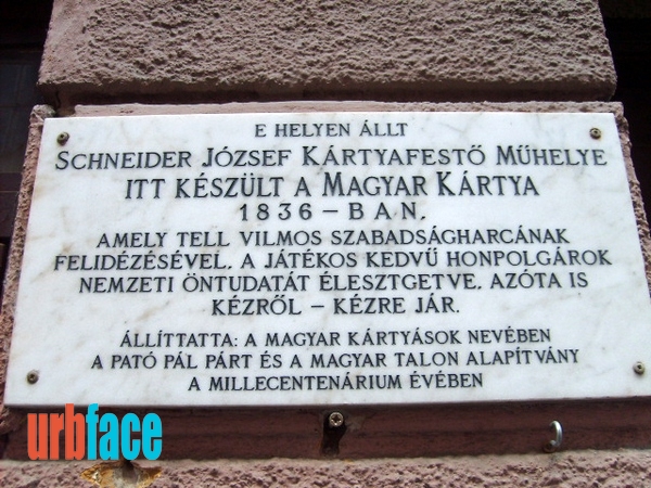 Az egykor Kreuzgasse (Kiskereszt utca) 517. számmal ellátott földszintes épületet 1834-ben vásárolta meg Schneider József kártyafestő, hogy kisebb átalakítások után itt rendezhesse be pakligyártó műhelyét. A mester ebben az épületben alkotta meg 1836-ban 36 lapos magyar kártyacsomagját, amely az osztrák elnyomás miatt nem magyar történelmi hősöket, szenteket és királyokat, hanem Friedrich Schiller drámaíró „Tell Vilmos” című, 1804-ben írt drámájának szereplői után mintázott meg. A trükktől függetlenül a tüköralakos Tell-kártyát az osztrákok betiltották és elkobozták. A tükörképességében és témájában is új játékszer nem csak Magyarországon, de Közép-Európa-szerte kiszorította a korábban általánosan használt egyalakos kártyaképeket. Kezdetben helvét- vagy svájci-német volt a játék neve. A XX. század elején az elnevezés magyar kártyára változott, német nyelvterületen pedig Doppeldeutsche lett. És még egy apró érdekesség a magyar kártya képeivel kapcsolatban: aki a Tell Vilmos legendás almajelentét hiába keressük a lapokon, nem fogjuk megtalálni. Ez az epizód ugyanis az 1850 előtt készült kártyák piros VI-os jelzésű lapján szerepelt csak. Amikor a játékszokások 36-ról 32-re csökkentették a csomag lapjainak számát, akkor a legkisebb értékű, VI-os jelzésű kártyák megszüntetésével a híres almajelenet is eltűnt. A Schneider-féle kártyák annyira népszerűek lettek, hogy a bécsi Piatnik gyár 1861-től kezdte el gyártani a Tell-kártyákat.